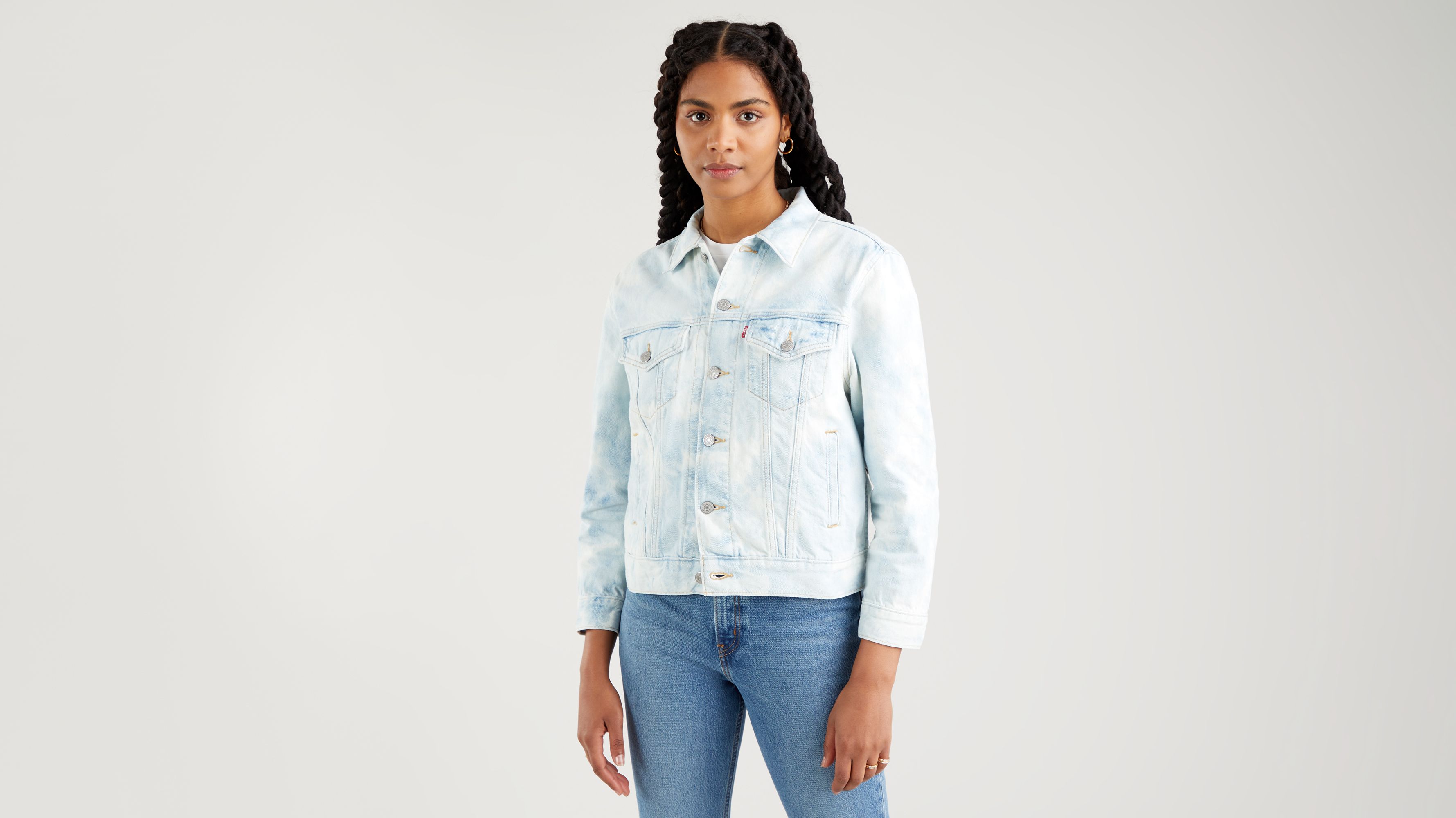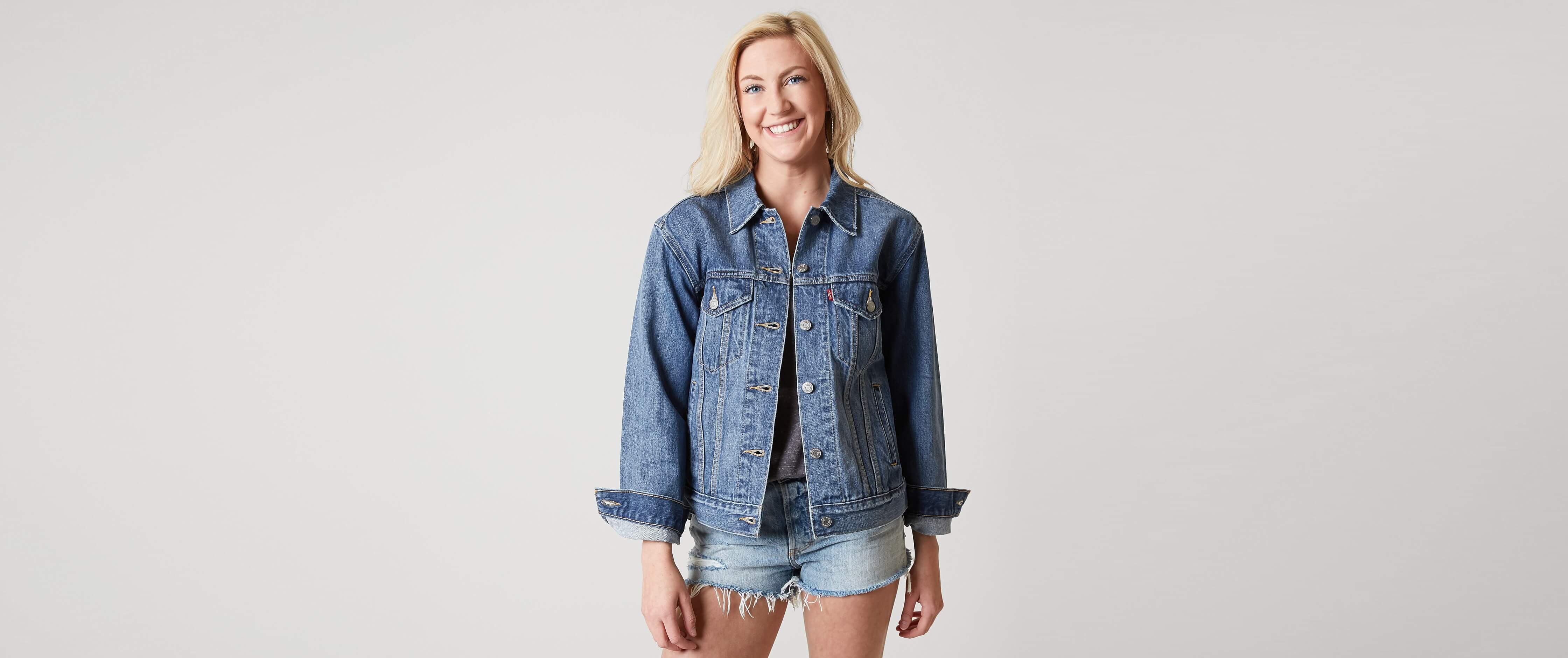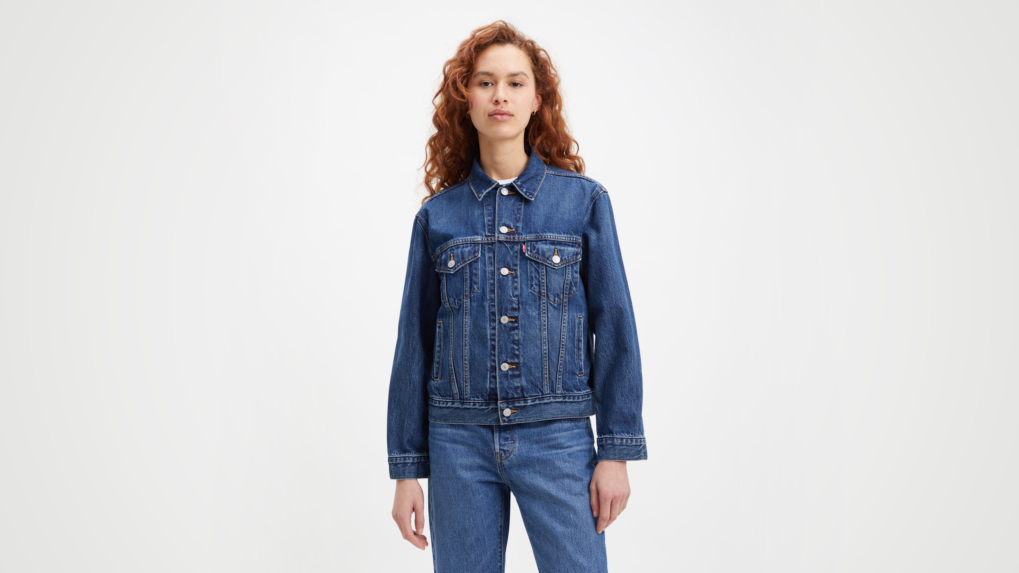 For a borrowed-from-the-boys look this Trucker jacket from Levis is featured in a bigger longer and looser silhouette from their classic boyfriend fit. Buy Levis Premium Womens Blue Ex-boyfriend Trucker Jacket - For Real. Relaxed oversized fit Non-stretch rigid.